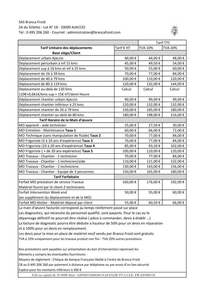 Consultez nos différents tarifs de prestation et d'intervention