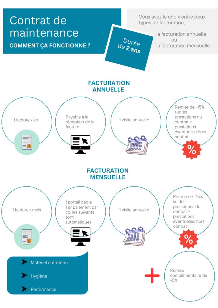 Avec le contrat d'entretien annuel bénéficiez de 15% de remise, + une remise additionnelle de 5% pour les contrats mensualisés Ignorer