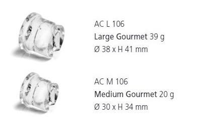 - Medium Gourmet : 20 g (Ø 30 x H 34 mm)
