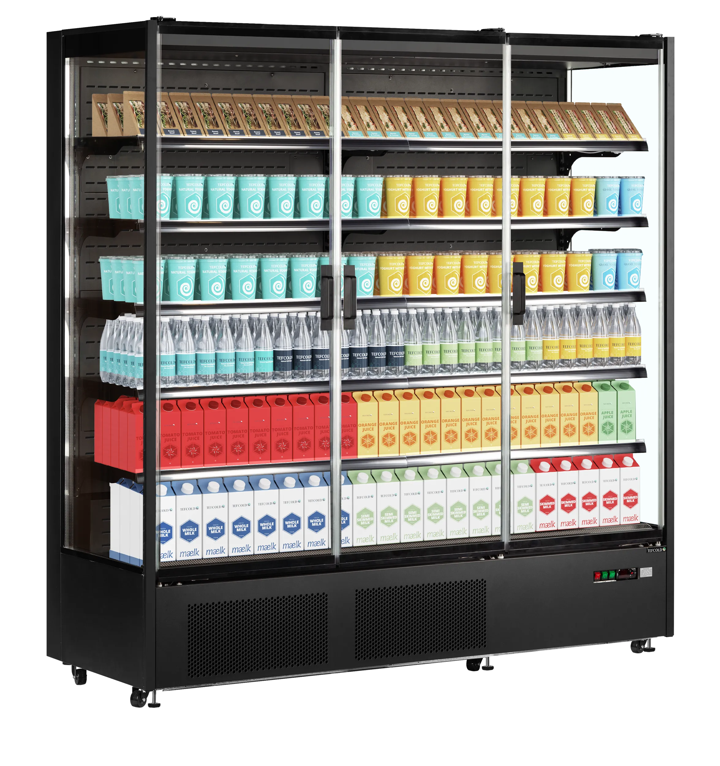 TEFCOLD PC1870B – Vitrine Réfrigérée Positive pour Supermarché – 3 Portes Vitrées – 1939 L / 1147 L – Noir